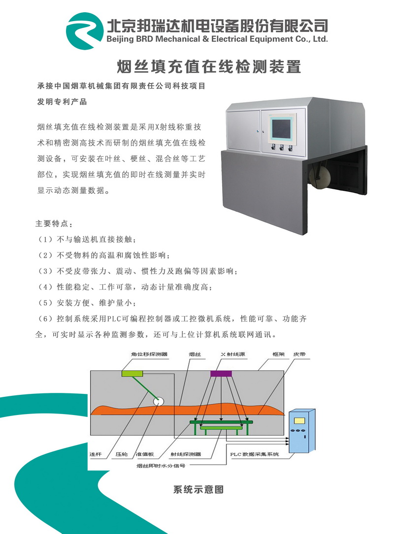 煙絲填充值在線檢測裝置介紹資料 | |